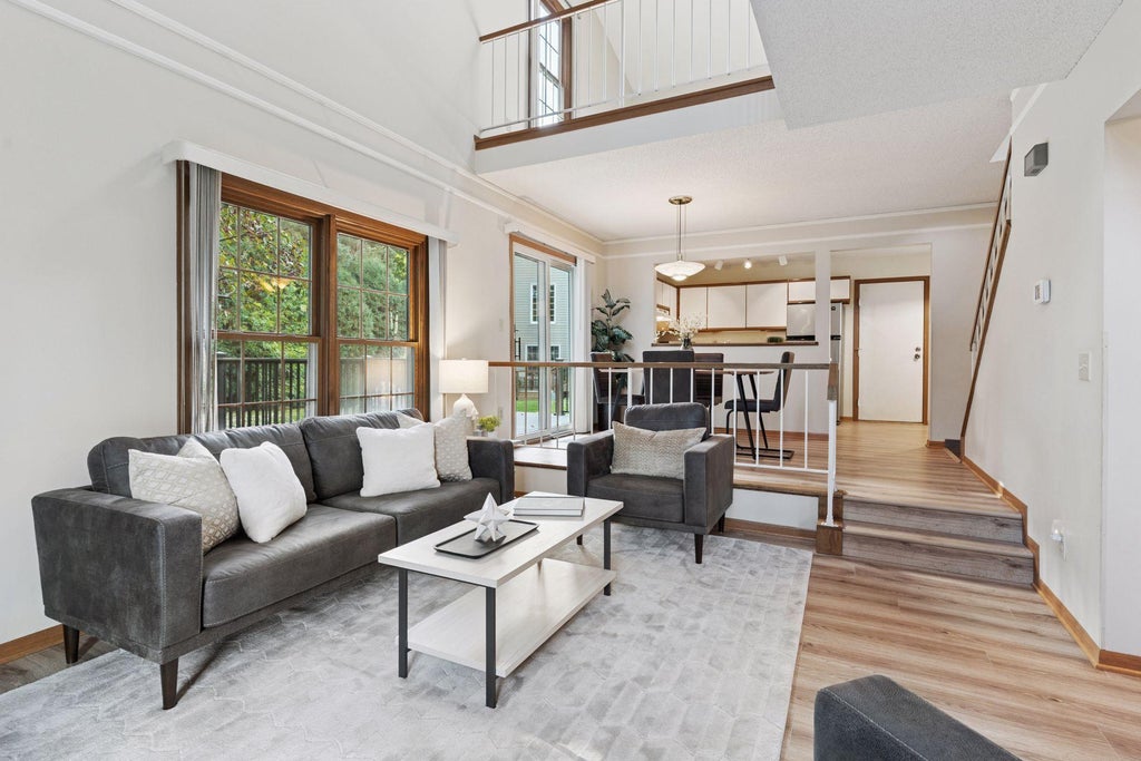 Meticulously maintained Rose Hill townhouse. Sunlight fills this end unit through the abundance of windows and skylight. The sunken living room creates nice, divided spaces while keeping the concept open. Kitchen, laundry, bedroom, bathroom and living room conveniently located on the main level. The spacious upper level has an additional bedroom, sunny loft and spa-like bathroom. The loft would make a wonderful family room, office or anything you may need the extra space for. Enjoy the beautiful fall season on the large maintenance free deck. Fantastic location with quick access to both downtown Minneapolis and St Paul, freeways, green spaces, U of M, dining and more.