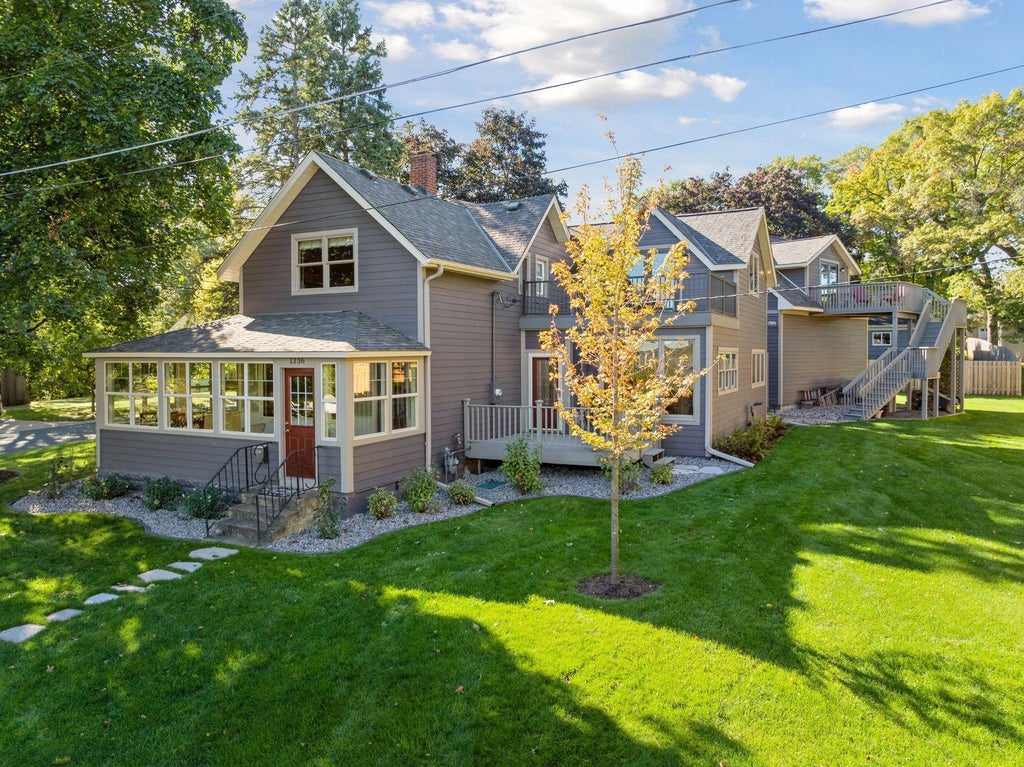 Commanding panoramic views of the St. Croix River and Stillwater Bridge, this expanded 1886 residence masterfully blends timeless craftsmanship with modern sophistication. Nestled in one of Stillwater’s sought after neighborhoods, 1336 2nd Avenue South captures the romance of heritage architecture while embracing thoughtful, contemporary updates. The inviting front porch—with its wrap of new windows—sets a serene tone for river watching and quiet mornings bathed in natural light. Inside, a reimagined main level flows seamlessly into an entertainer’s kitchen featuring curved island seating for six or more, concrete surfaces, stainless steel appliances, and a gas range. The open design connects effortlessly to the dining and living spaces, creating a refined yet relaxed gathering environment. Upstairs, the primary suite offers a private sanctuary under vaulted ceilings, complete with a generous walk-in closet and a private balcony framing the St. Croix River. Two additional decks extend the home’s outdoor living potential, ideal for hosting or unwinding beneath the trees. A versatile bonus suite above the heated, insulated three-car garage provides endless possibilities—guest quarters, art studio, executive office, or fitness retreat—while dual laundry rooms on the main and lower levels add practical convenience. Low-maintenance cement-board siding and a concrete driveway enhance everyday ease, complementing the home’s meticulous upkeep and beautifully landscaped corner setting. Just moments from downtown Stillwater’s boutique shopping, dining, and riverfront trails, this home invites you to experience a rare balance of historic charm and modern luxury—where every window frames a piece of Stillwater’s story.