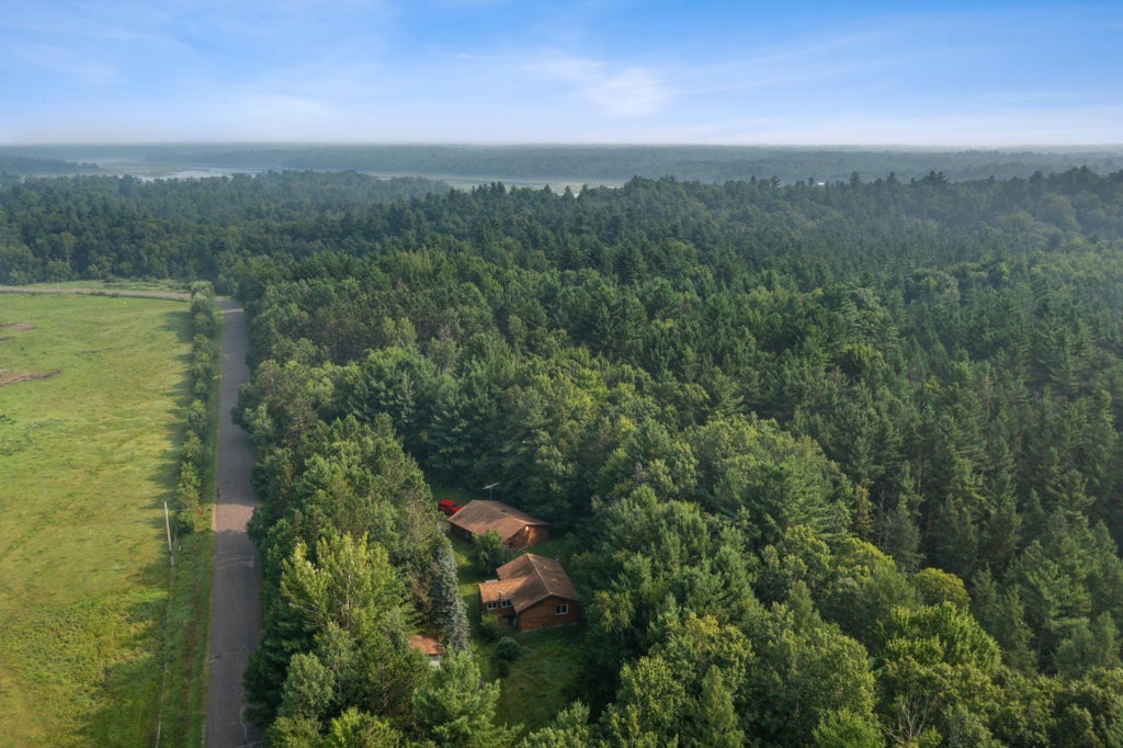 This picturesque scenic country living home is on 40 acres of beautifully wooded land. While there is only one large master bedroom, on the main level there is additional sleeping space available in the lower level. There is much opportunity in finishing the lower level for an entertainment room or exercise room. It has a two car detached garage with a bunk area for your extra guests. The view on this land is breathtaking with the wildlife and for all you hunters to enjoy. The home has a porch with a wood burning stove. There are two extra sheds as a storage area. This home site is private and located less than a mile from Hwy 35, approximately 3 miles south of the village of Siren, which offers shopping, schools, and employment opportunities. Additionally, several area lakes within a 4 mile radius. Come and see your beautiful country living dream home.
