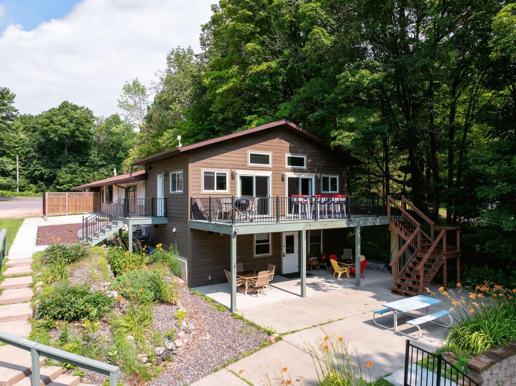 Long Lake! Great opportunity to own this beautifully remodeled property—ideal as a family compound, vacation getaway, or income-producing rental. With two separate living areas, this home features two kitchens, two living rooms, three bedrooms, and two bathrooms, offering both flexibility and privacy. Recent upgrades include custom California closets, new flooring and paint throughout, brand-new kitchen cabinetry topped with granite and quartz counters, and fully updated bathrooms. Step outside to a spacious lakeside deck with stunning views, or take a short, gentle walk to your dock slip and enjoy one of Northwest Wisconsin’s most sought-after lakes. Long Lake spans 3,478 acres and features excellent fishing, over 19 miles of undeveloped shoreline, sandbars, lakeside restaurants, and endless recreational opportunities. Direct access to ATV and snowmobile trails right from your doorstep makes this a true four-season destination.