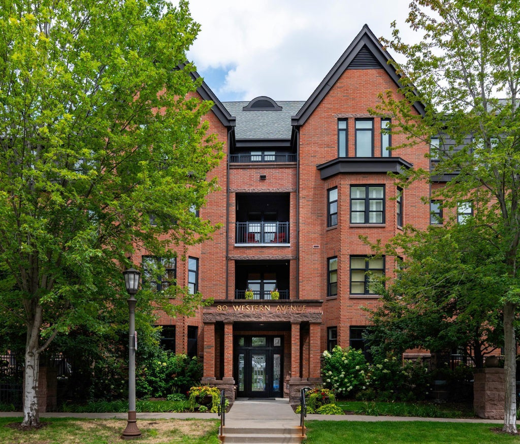 Coveted Western Row awaits! Located in the heart of the Historic District of St. Paul, this sun-drenched corner unit provides spacious one level living at its best. Open concept main living areas include updated kitchen & center island, cozy gas fireplace in the living room and large dining area. The covered deck is a perfect extension of the living room; a great spot for morning coffee or evenings with friends. Wonderful storage throughout, including kitchen pantry, built-ins, walk-in closets, and laundry/mudroom. Primary bedroom with ensuite bath including separate tub/shower. Versatile second bedroom with custom Murphy Bed. Office/Library room is wonderful flex space for a home office or guests alike. 2 underground parking stalls and fully enclosed storage unit. Just steps to treasured neighborhood shops & restaurants!