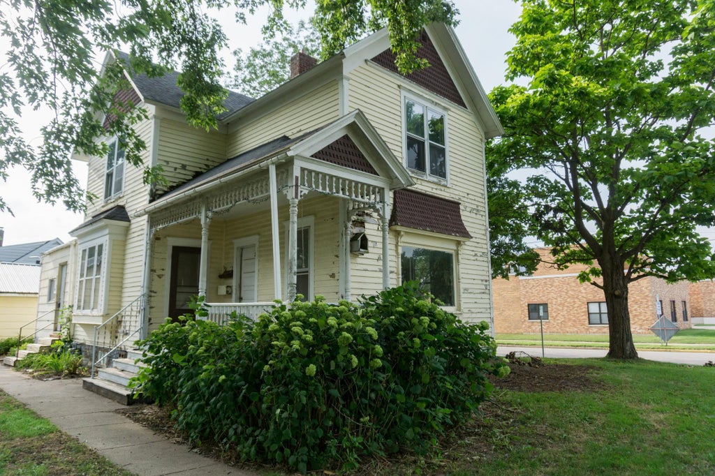 Don't let this character-rich Victorian-style home pass you by! While the exterior could use a little paint and TLC, the updated interior tells a different story. 3+ bedrooms and 2.5 baths across 1630 sq ft, this home features fresh paint, new vinyl flooring, a fully updated kitchen with new cabinets, countertops, and sink, plus two updated bathroom vanities and all new lighting throughout. Vintage charm remains with an original bay window with window seat, pocket door with glass insert, and beautifully preserved trim and doors. The primary suite includes a walk-in closet and private bath. You'll also loved the wide staircase leading to the upper level, which features two full baths. Additional perks: 1st floor laundry, a mudroom off the kitchen, a welcoming front sitting porch and a 2-car garage with front carport and rear workshop. Located on a corner lot near schools, parks, and downtown. THIS ONE IS NOT A DRIVE-BY!