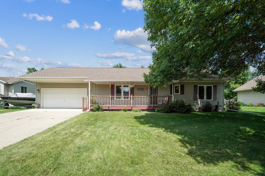 Welcome to 17th St! The front porch welcomes you inside to the comfortable living room. The kitchen features white cabinets and an open layout to the dining room. Hardwood floors on the main floor are gorgeous. Down the hall from the dining room are three good sized bedrooms with great closets on the main level. In the lower level there are two additional rooms, one is a bedroom with a walk in closet and the other room is an office used as a bedroom (no closet), a large family room and a large laundry room! Outside the backyard has a fantastic patio area for relaxing and grilling. The yard is fully fenced for family and pets. The play house stays with the home! Room for a garden on the West side of the yard. Garage features room for 2 vehicles plus room on the side for a boat or camper! No more storage fees! This home is a must see-nice one level living with a large fenced yard!