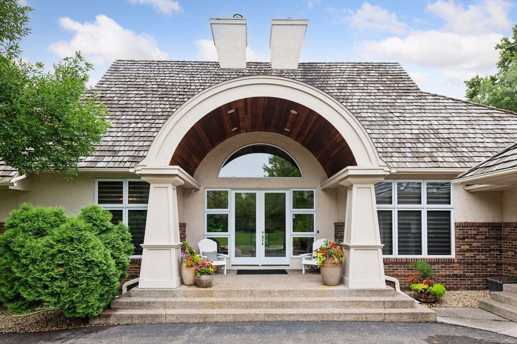 Discover the perfect blend of curated design, luxurious amenities, and timeless privacy in this stunning 5 bed/5 bath walk-out rambler. As you step inside, you'll be greeted by a transformed interior featuring an open-concept floor plan and stunning design details hand-selected to elevate the way you live, entertain, and unwind. Highlighted by dramatic high ceilings, natural light throughout, and refined finishes that speak to craftsmanship and care, the home offers comfort and convenience for effortless daily living. Kitchen features high-end appliances, large center island with breakfast bar, beautiful tiled backsplash, and plenty of cabinet space. The formal living and dining areas offer their own special touches with a dual-sided gas fireplace, custom lighting, floating shelves, and gleaming hardwood floors throughout. Retreat to the luxurious main level primary suite, complete with a spa-like bathroom, separate walk-in shower and tub, and generous walk-in closet. Two additional bedrooms and designated home office space are located on the main level as well. The walk-out lower level offers two more bedrooms, a family room with an amazing wet bar ideal for entertaining, a large combination media room/game room, and flex space for optional exercise room, yoga studio, or craft space. Each floor also conveniently offers a spacious laundry room. Enjoy the peaceful and serene outdoor setting from the oversized deck or in the beautifully landscaped backyard providing sweeping views and rare privacy. Whether you’re entertaining in style or relaxing in peace, this home offers the best of both worlds — all wrapped in architectural beauty and surrounded by nature.