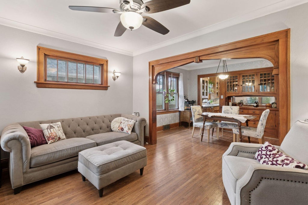 A home filled with character and history! Step inside and you’ll instantly feel the charm of this beautiful home. Original woodwork, a built-in buffet, and ornate antique light fixtures tell the story of a time when craftsmanship mattered. The main floor bedroom adds convenience, while the refinished hardwood floors (2022) shine throughout. Modern comforts blend seamlessly with vintage charm—new refrigerator (2022), furnace and A/C with smart thermostat (2022), and washer and dryer (2024). With its original windows and timeless details, this home offers both warmth and personality. Nestled in a quiet neighborhood with easy access to everything you need. Bonus: Take advantage of a fully assumable mortgage at just 3.5% for $220,000!