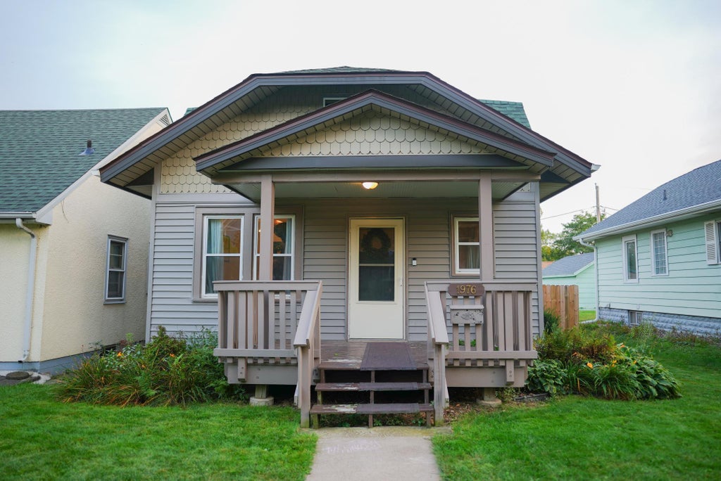 Updated bungalow with a covered front porch nestled in a quiet neighborhood. The kitchen features granite countertops, stainless steel appliances, and a breakfast bar. The main floor offers a flexible layout with beautiful flooring, oversized white trim, recessed lighting, and crown molding throughout. Upstairs, brand new carpet was installed in 2022. Additional updates include a new garage opener (2022), blacktop driveway (2023), 6-foot privacy fence (2023), new gutters (2025), and professionally cleaned air ducts (2025). Low-maintenance siding and windows along with an oversized one-car garage and a backyard with patio space.