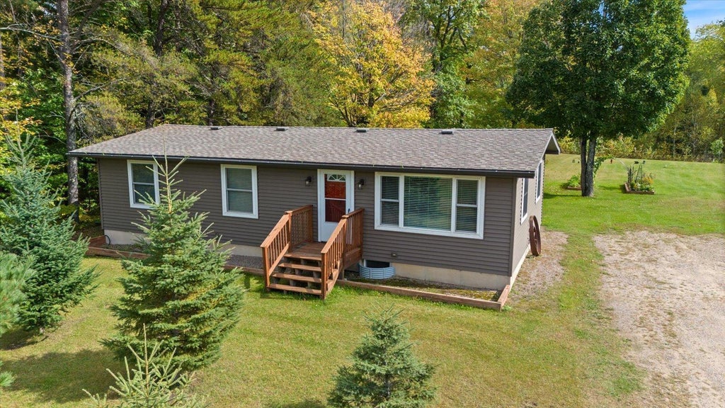 Charming 3-bedroom, 2-bath rambler on 1+ acres. The open-concept kitchen and living room provide a warm and inviting space, perfect for family time or entertaining. The lower level includes the family room with a bedroom and bath. Plenty of storage. Step out to the back deck to enjoy summer and fall evenings surrounded by nature. The property features fruit trees and trails to explore, offering a peaceful outdoor retreat. Conveniently located near both Grand Rapids and Coleraine amenities. An oversized detached garage, insulated with electric provides excellent storage and workspace. The large pine trees in the front yard provides a natural buffer for added privacy. Come and see all this home has to offer!