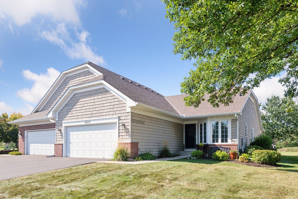 Welcome home to this wonderful townhome nestled in the premier Deer Run Golf Course community, offering low-maintenance main-level living with scenic views of the 18th fairway; recent updates include a new AC, new furnace, new flooring, updated paint colors, an extended kitchen, a new water heater, a new water softener and new driveway. The spacious main floor features vaulted ceilings, hardwood floors, an eat-in kitchen, formal dining, and an inviting living room with a 2-sided gas fireplace, while the bright sunroom with a wall of windows opens to the maintenance-free deck perfect for entertaining or relaxing with peaceful golf course views; just off the main level is a flex room ideal for an office or cozy den, and the primary suite completes the level with an updated bathroom offering a walk-in shower, linen closet, and double-sink vanity; another highlight is the EXTRA-deep garage designed for a golf cart, a 3rd vehicle, or a workshop; the finished lower level expands the living space with a family room, two additional spacious bedrooms, a three-quarter bathroom, a workout room, and a generous storage/workshop area with shelving and a utility sink; a newer roof, tasteful landscaping, and proximity to the community fire pit add even more value and curb appeal; set in a well-managed association, residents enjoy carefree living with easy access to Victoria’s parks, lakes, trails, and charming downtown shops and restaurants, all just steps from Deer Run Golf Club, near Lions Park, and minutes to the Victoria Recreation Center.
