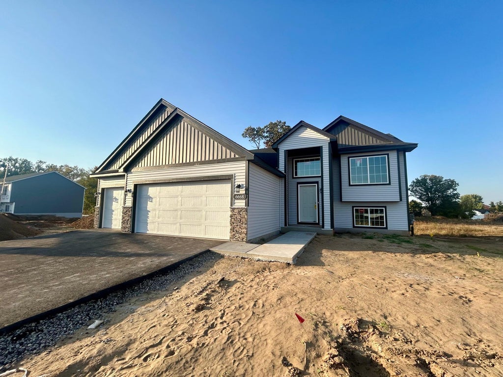 Completed New Construction Split Level Single Family Home Ready for a Quick Closing! NO HOA! The Maple floor plan offers 1345 fsf on the main level featuring an open concept living area w/ vaulted ceilings, 3 Bedrooms, 2 Bathrooms, and 3 Car Garage! Located on a 0.26 acre walkout homesite, includes sod and irrigation. Unfinished Walkout Lower Level offers space for a future Family Room, 4th/5th Bedroom, and additional Bathroom. Private Primary Suite includes a walk in closet and Private Bathroom. Kitchen features quartz countertops, white cabinets, stainless steel appliances, pantry, recessed lighting, and center island! Photos and renderings may not depict actual plan, materials, & finishes may vary. All measurements are approximate.