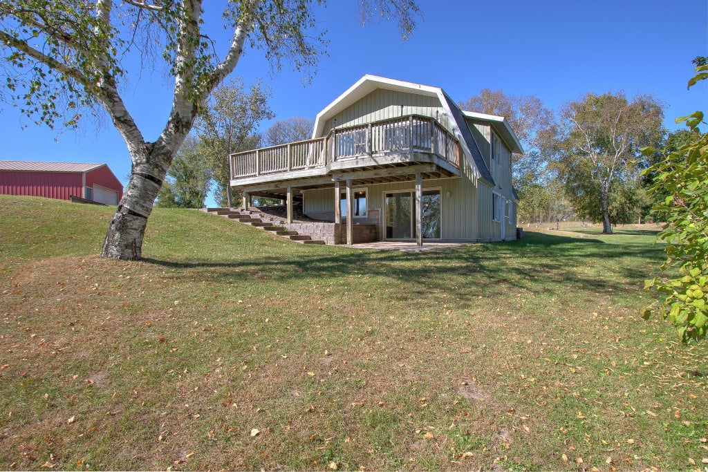 Enjoy the best of country living just minutes from downtown Cambridge on this beautiful 1.68-acre property with sweeping southern views from the wrap around deck. This 3-bedroom, 2-bath home showcases a distinctive exterior design and features vaulted ceilings with exposed cedar beams that creates warmth and character. The main floor offers a nice open design, main floor bedroom and full bath, and the walkout lower level features two more bedrooms, another full bath, and a huge patio door leading out to the backyard and up to a spacious concrete patio—perfect for outdoor relaxation and entertaining. Over the past four years, the seller has made extensive updates, including a new roof, siding, furnace, A/C, vinyl plank flooring, carpet, ceramic tile, interior and exterior doors, lower-level bathroom vanity, knockdown ceilings, fresh paint, a new deck, and more—making this home truly move-in ready. The 24x36 pole building provides ample space for parking, storage, or all your recreational toys, offering the perfect blend of functionality and country charm with convenient access to town amenities. Enjoy the 3D virtual tour and schedule your showing today!