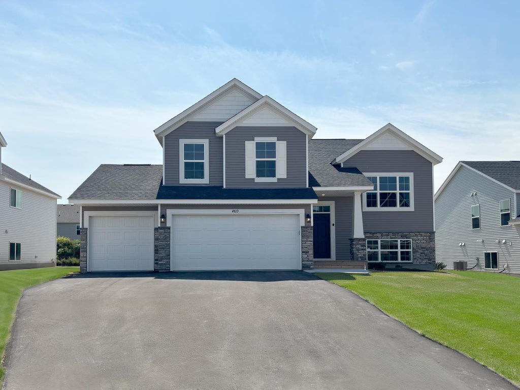 Welcome HOME to your NEW CONSTRUCTION home in Forest Lake! NO HOA. This highly requested Primrose floor plan offers you five bedrooms and three baths with a FINSIHED basement, towering vaulted ceilings, kitchen pantry, functional center island, stainless steel appliances, direct vent microwave, stone counter tops in kitchen and bathroom vanities, gas fireplace with beautiful accent, spacious and light-filled owner's suite with huge walk-in closet, private owner’s bath, expanded luxury vinyl plank flooring, sod, trees, irrigation, landscaping, and much more! Come and make this one yours!