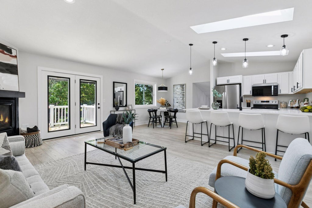 Welcome to this beautifully updated 2-bedroom, 2-bathroom end unit townhome in a highly desirable Minnetonka neighborhood! This move in ready property features a bright and open layout with luxury vinyl plank flooring throughout the main and upper levels, a stunning fireplace, a dedicated dining area, living room with skylights, and a fully updated kitchen complete with new cabinets, stainless steel appliances, and quartz countertops. There are also two spacious bedrooms, a remodeled primary walkthrough bathroom, and for convenience a half bathroom and laundry room off the entryway. Enjoy the spacious deck which is perfect for outdoor gatherings or your morning coffee. There is a 2-car garage and access to plenty of storage above the garage from inside the home. Ideally located near local parks, grocery stores, retail shops, and restaurants, this stylish and comfortable home truly has it all!