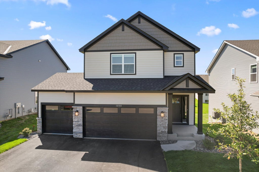 Home is complete and move-in ready. This beautifully crafted new two-story home is tailored to meet the needs of today’s busy families. The first floor boasts an open-concept layout that seamlessly connects the Great Room, dining area, and a versatile kitchen—ideal for both everyday living and hosting gatherings. Upstairs, you’ll find a centrally positioned loft, perfect for relaxing or creating an additional living space, alongside two secondary bedrooms and a spacious owner’s suite designed for ultimate comfort. Located in Bradford Park, this home offers residents unparalleled access to outdoor recreation, including Woodland Trails Regional Park and the picturesque Lake Orono. Enjoy the tranquility of nature while staying conveniently close to the vibrant retail and shopping destinations in Downtown Elk River. Don’t miss this opportunity to embrace modern living in a community that truly has it all! Ask about how to qualify for savings up to $5,000 with the use of the Seller's Preferred Lender!