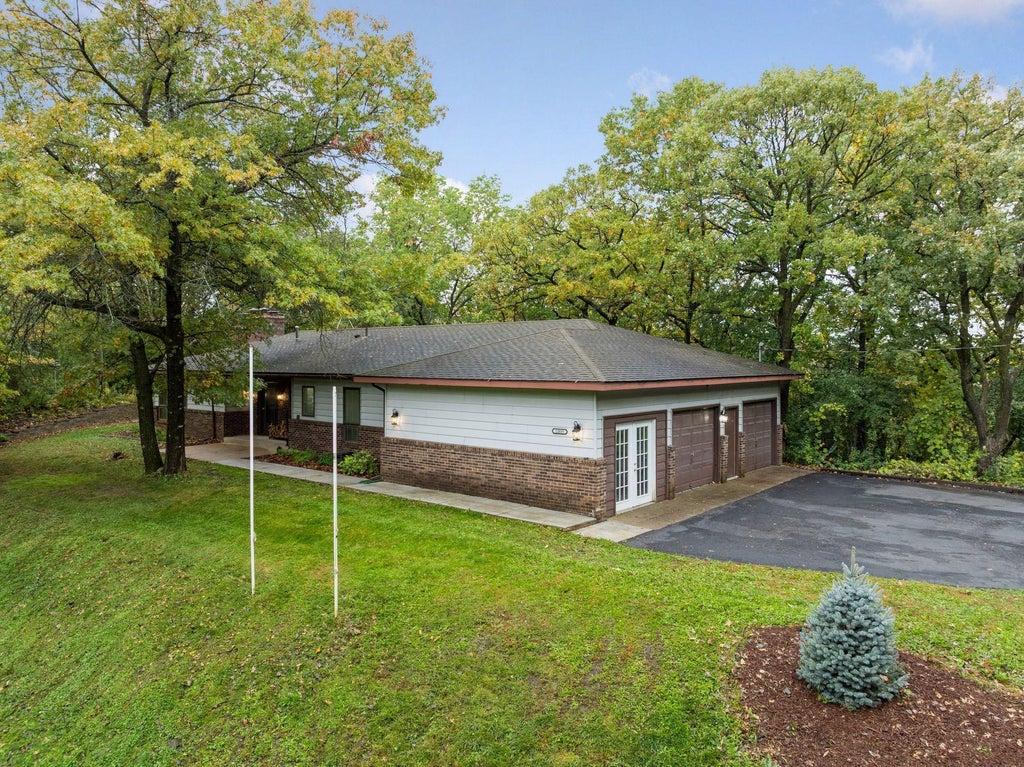 Welcome to this beautifully maintained one-level home perfectly set on a 1.3 acre wooded lot offering privacy, nature, and peaceful surroundings. The home backs up to Huntington park for extra space to enjoy. Inside the home, the features include main-level living with a comfortable open layout with an updated kitchen, double sided wood-burning fireplace, 3 bedrooms, a primary 3/4 bath with laundry on the main floor and lower level too. Many updates have been completed including flooring and paint, newer water heater, OM water system, electric heater in the attached garage. Finished basement space for a nice rec room or playroom and 3/4 bath. There is also future space to add a potential 4th bedroom. Separate extra stairs that come in from garage and lead to basement too. Awesome 3rd stall workshop/workout area or flex space off the garage too. And a bonus extra garage with space for more storage! This is a one of kind property if you want space but still close too everything!
