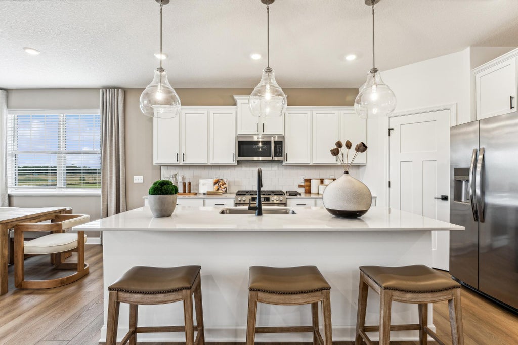 This is a to-be-built home! Experience effortless one-level living in the Aspen twin home, ideally situated in the highly desirable Tavera community in Corcoran. This thoughtfully designed home combines modern style and everyday comfort with an open-concept layout filled with natural light. The kitchen impresses with quartz countertops, a spacious walk-in pantry, and sleek slate-finish appliances—including a refrigerator. Relax by the cozy fireplace in the Great Room or unwind in the four-season porch, offering a comfortable spot to enjoy scenic views year-round. With an attached two-car garage, low-maintenance exterior, and access to Tavera’s beautiful surroundings and convenient location, the Aspen offers the perfect blend of sophistication and easy living.