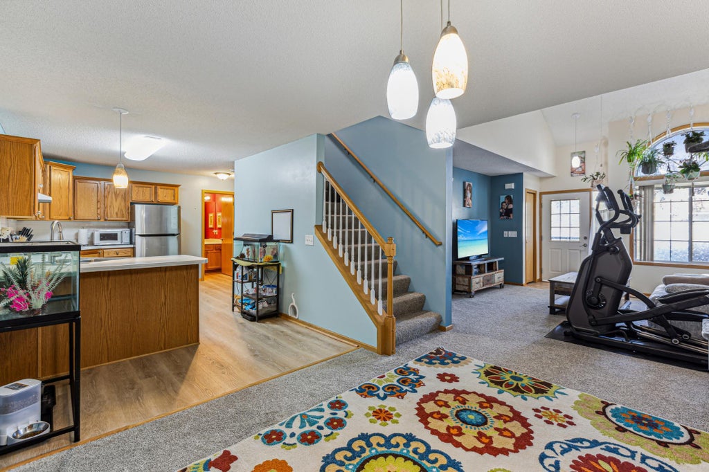 Step inside to an open-concept main floor, where the living, dining, and kitchen areas flow seamlessly—perfect for hosting or enjoying quiet evenings at home. Large windows flood the space with natural light, creating a bright and inviting atmosphere.