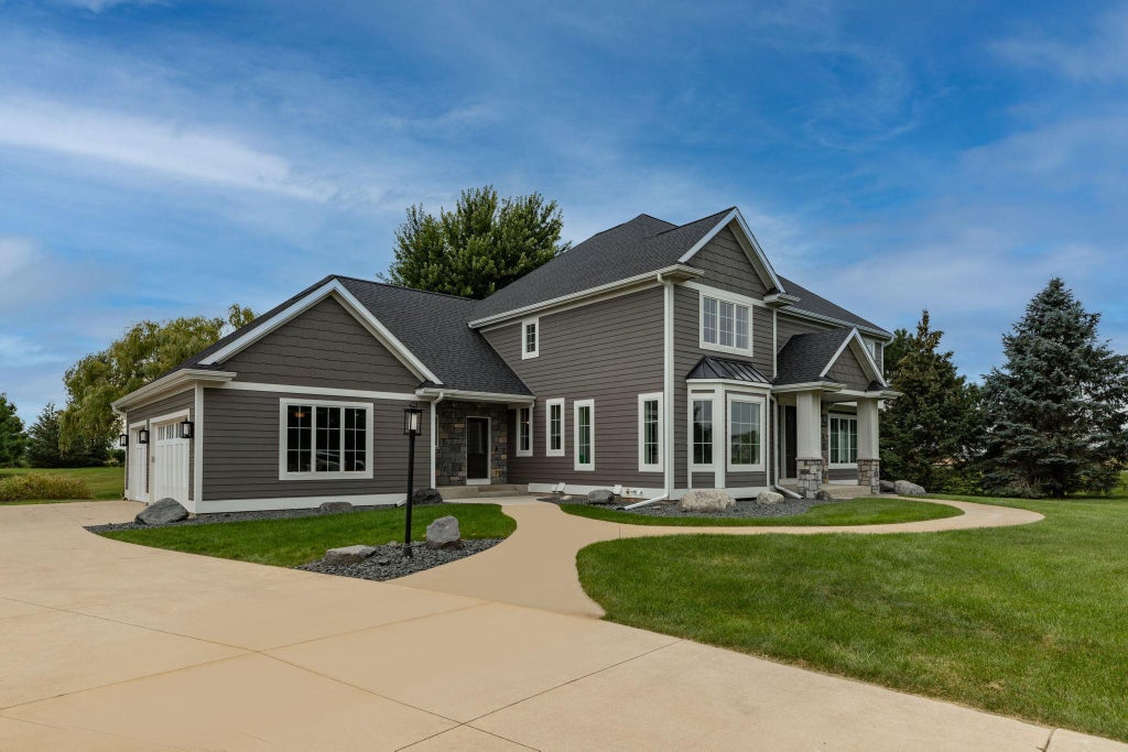 Spectacular attention to detail defines this spacious two-story home, completely remodeled inside and out and situated on a private, panoramic 2.18-acre lot in Mayowood Hills. The entire home has been thoughtfully redesigned with superior craftsmanship, luxurious finishes, and timeless style. Step inside to find European white oak hardwood floors throughout the entire home, complemented by custom cabinetry, Cambria countertops, high-end finishes, and elegant crown molding and woodwork. Enjoy the warmth of two gas fireplaces, two laundry rooms, a four-season sunroom, and a five-car garage (heated three-car attached plus a two-car detached). Additional features include a central vacuum system, permanent exterior LED holiday lighting, and a hardwired security system. The main floor welcomes you with a stunning staircase, leading to an elegant living room with a see-through fireplace, formal dining room with butler’s pantry, and an open-concept family room with a second fireplace featuring customizable lights. The spacious kitchen features an 11-foot center island, full-height backsplash, induction cooktop, built-in clear ice maker, and premium appliances. A dedicated office, half bath, laundry room, mudroom, and four-season sunroom complete the main level. Upstairs, the primary suite blends luxury with function, featuring a freestanding soaking tub, walk-in shower with dual showerheads/rain shower feature, a 12-foot vanity, and a custom-designed walk-in closet offering abundant space. Three additional bedrooms include a Jack-and-Jill bath and a private 3/4 bath, along with a convenient second laundry room. The lower level provides versatility with a spacious family/theatre room enhanced by color-changing backlit columns, wet bar, bonus/exercise space, and a fifth bedroom with a large walk-in closet and bath. This remarkable home offers a rare combination of luxury, space, and privacy, truly move-in ready with an extensive list of amenities and upgrades throughout.