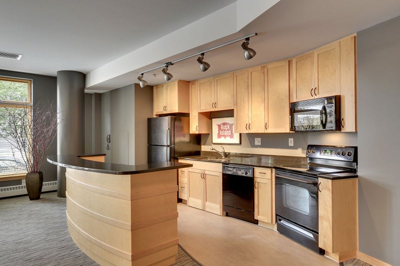 Residents at Rock Island Lofts not only enjoy the modern condo conveniences of their own roomy abodes, but shared building amenities as well. There’s an inviting front lobby with windows on two sides and comfortable couches, as well as a community gathering room with chairs, tables, and a full kitchen. A nicely equipped fitness room has both cardio and strength equipment, and there’s also a sitting room for quiet conversations and meetings. An underground heated parking garage provides comfort during those chilly nights. The pet-friendly building at the corner of N 4th Avenue and N 1st Street is adjacent the Cedar Lake Regional Trail. The North Loop Playground, the Mississippi Walking Trail, and the Mississippi River itself are all nearby. There is also no lack of local dining options in the immediate area, including Maison Margaux, Spoon and Stable, Sanjusan, and NOLO’s Kitchen and Bar.